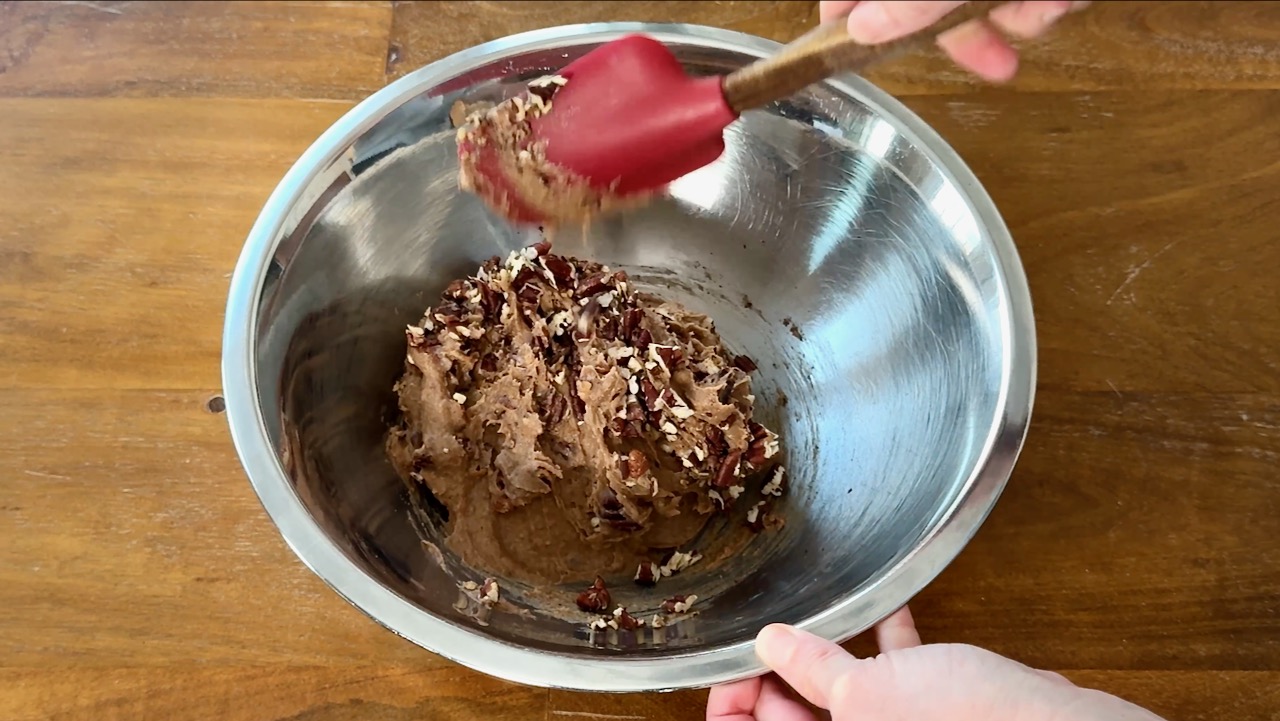 Transfer the date & pecan puree to a mixing bowl. Fold in the toasted pecans. Set aside.