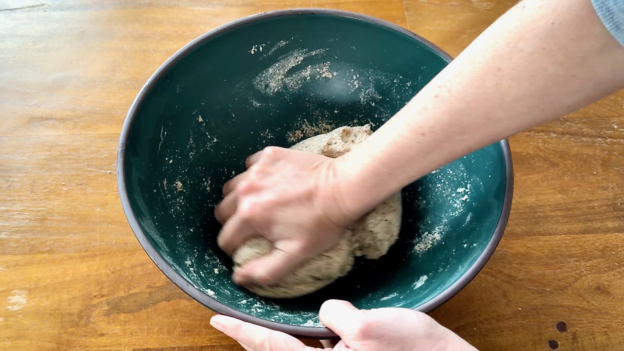Add ½ cup water and stir until a cohesive ball forms. Knead until smooth.