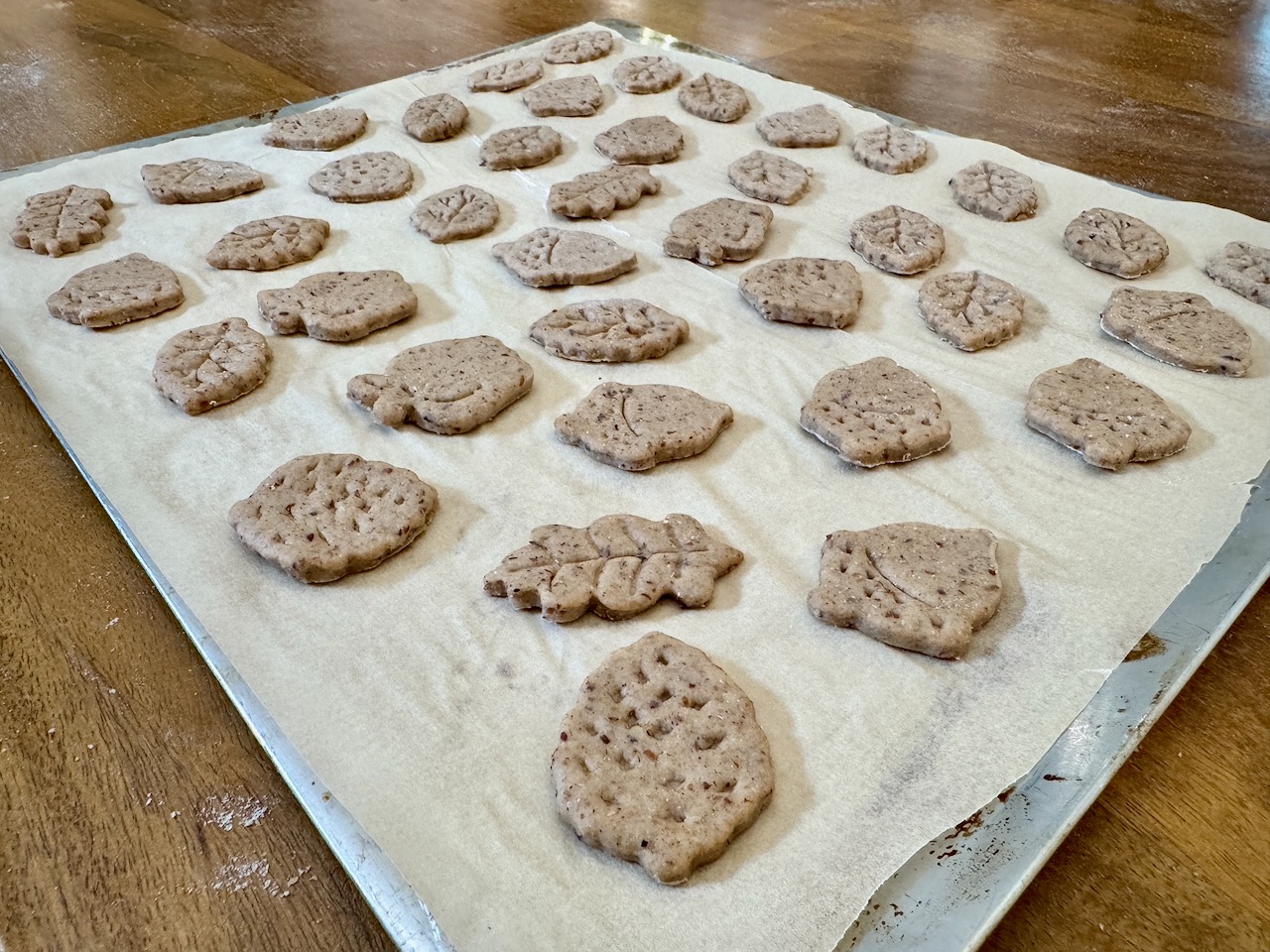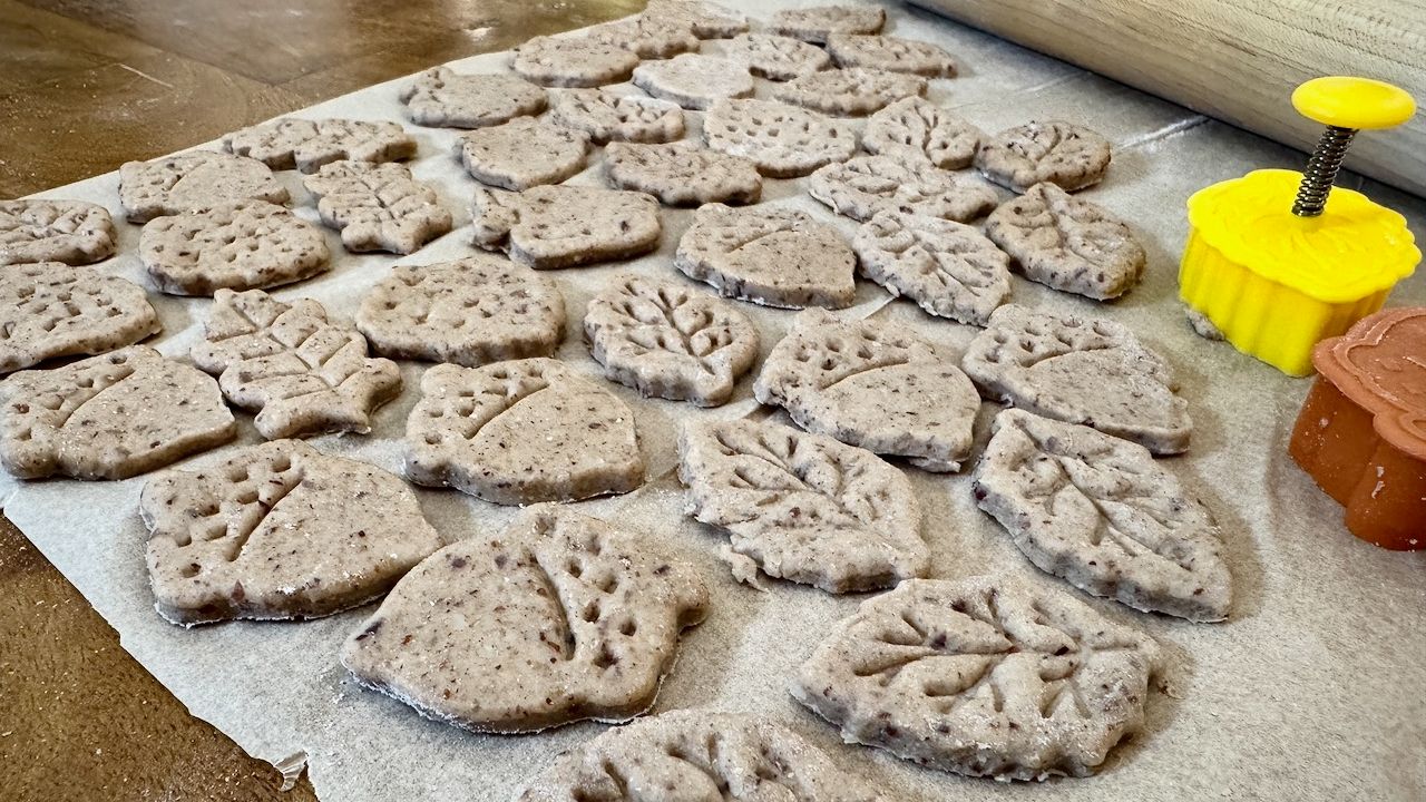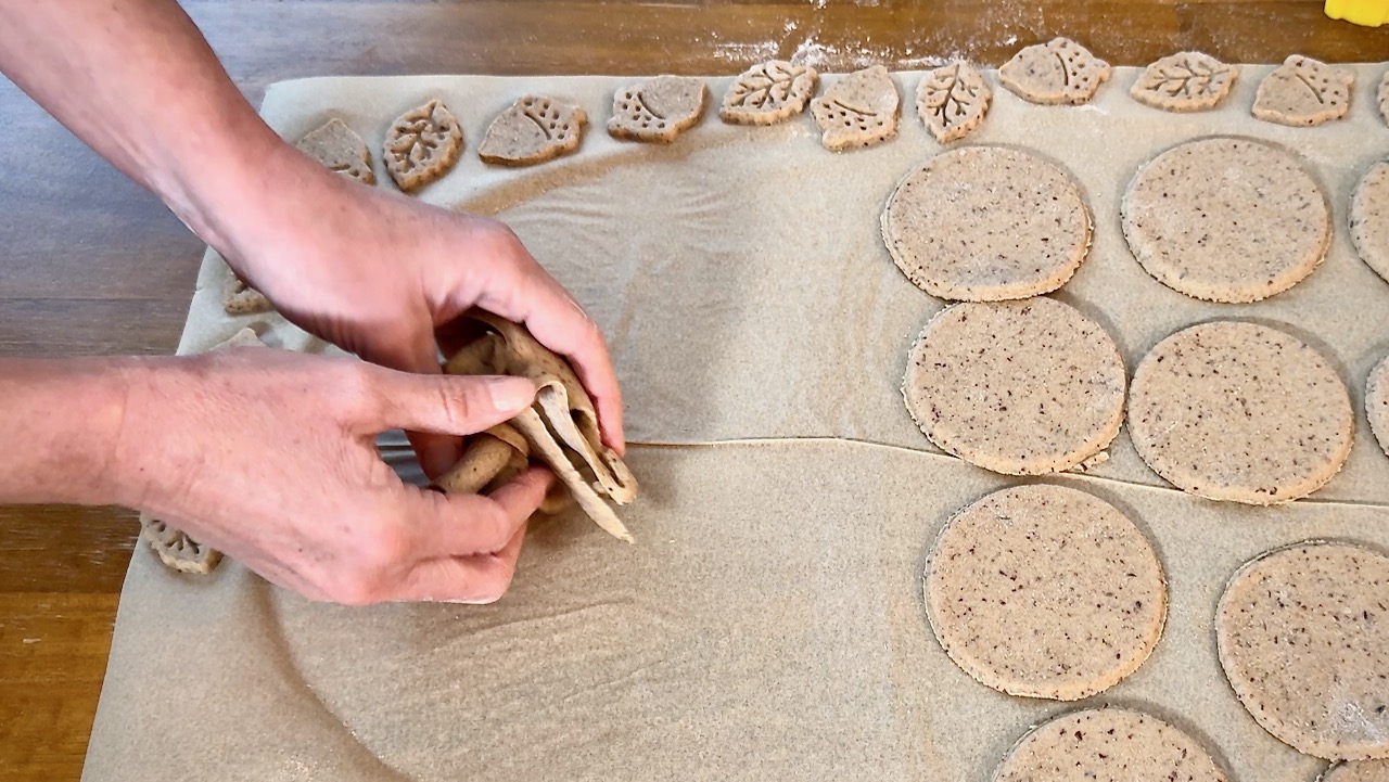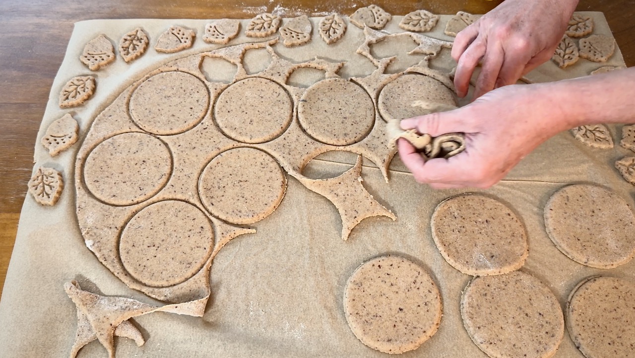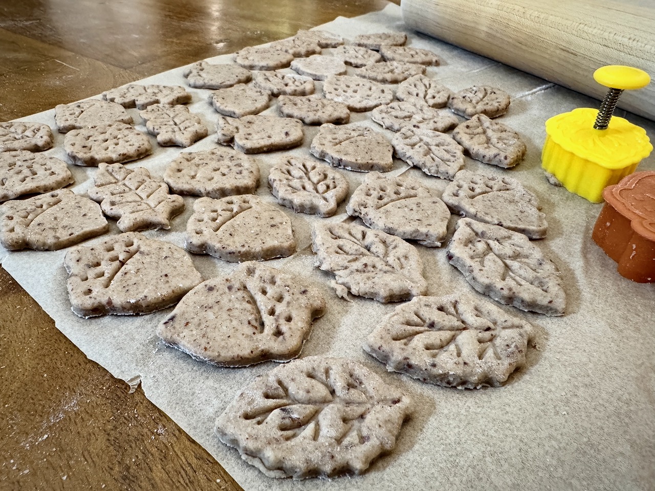 Note: You don't necessarily have to stick to leaves and acorns. Use any cookie cutters you have, but try to make all the cookies *roughly* the same size so some won't take longer to bake than others. The cookie cutters I use are linked below in the equipment notes.