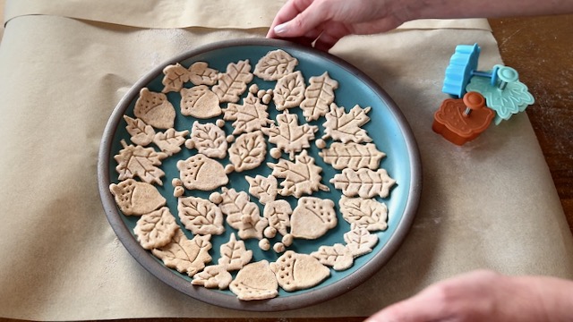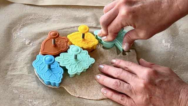 Use cookie cutters to make dough leaves.