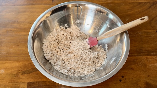 Then stir until the dough looks "shaggy." The best tool for this is a pastry blender (also known as a pastry cutter) but you can just as easily use a fork or even a silicone spatula.