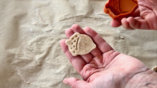 You get bonus points if your cookie cutters have stamps in them, like mine do, to make impressions in the top surface of the cut-outs. You can get these on Amazon, and I've included links below to those.